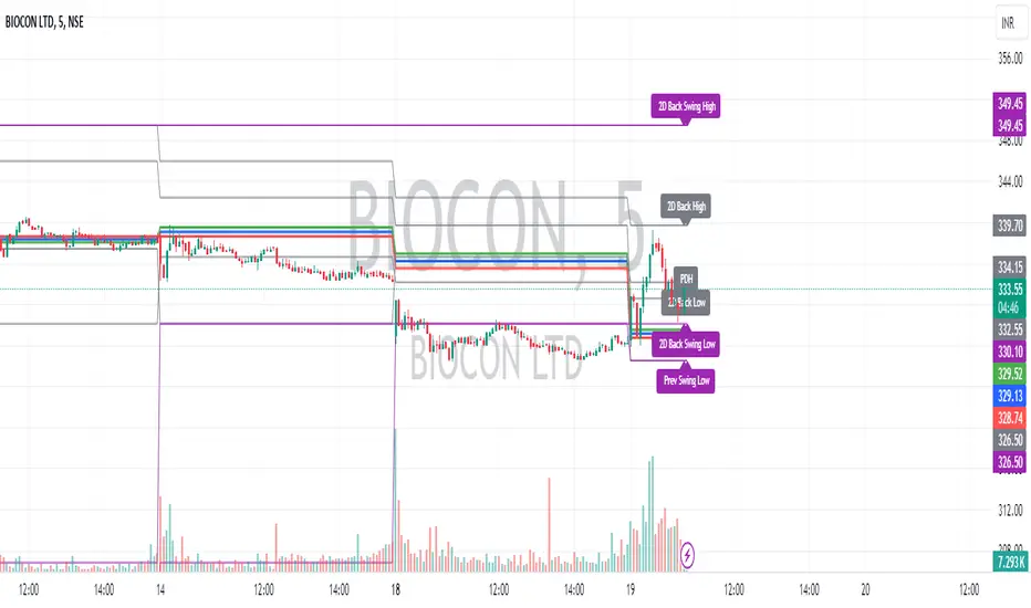 Two Days Back Swing High/Low: The highest high and lowest low from a specified period (swing period) of two trading days ago.