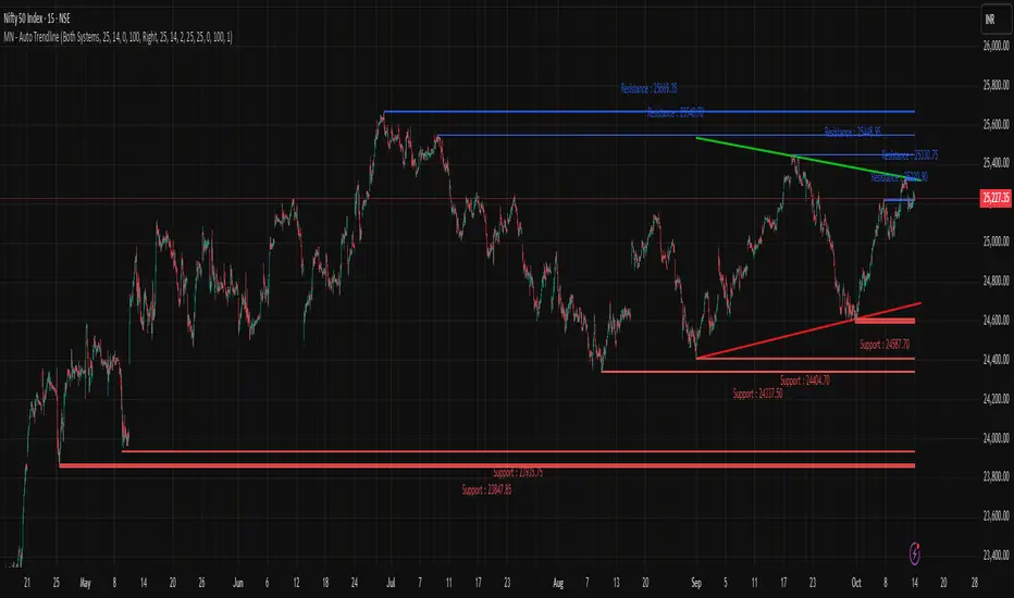 MN - Auto Trendline is a powerful multi-system technical tool designed to automatically detect and draw trendlines, support & resistance levels, and Fibonacci retracements on any chart and timeframe.