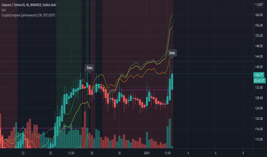 e.g. compares what the relative price of BTC would have been based on it's percentage gains against LTC if you had invested in each at the start of the chosen period.