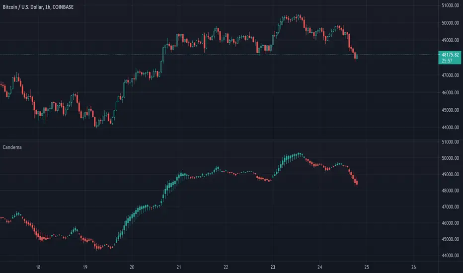 - 'open' = ema with longest length, which is not 'high' or 'low'