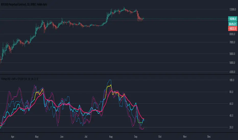 RSI seams to be one of the most used indicators by far, and that comes because of merit . With that in mind, the goal of this indicator is to expand upon the tradition RSI or Relative Strength Index we all know and love :) I started by adding an EMA crossover. Which gives you, the users, a general idea of when to buy and sell outside of just watching a line go down and up. To take thinks even further, I decided to add options for both Fast and Slow Stochastic oscillators. Adding STOCH brings in another variable when deciding on an entry, technically its a bit hard to explain but in practice it would go something like this: you notice RSI is down around the level 20 mark and RSI is crossing up above it's EMA , which is BULLISH signal, and you're thinking about going long. As a second confirmation you can look at the STOCH rsi , if it's also crossing above the previously spoken EMA that's another BULLISH signal. This process can be repeated once RSI has risen to find an exit.
