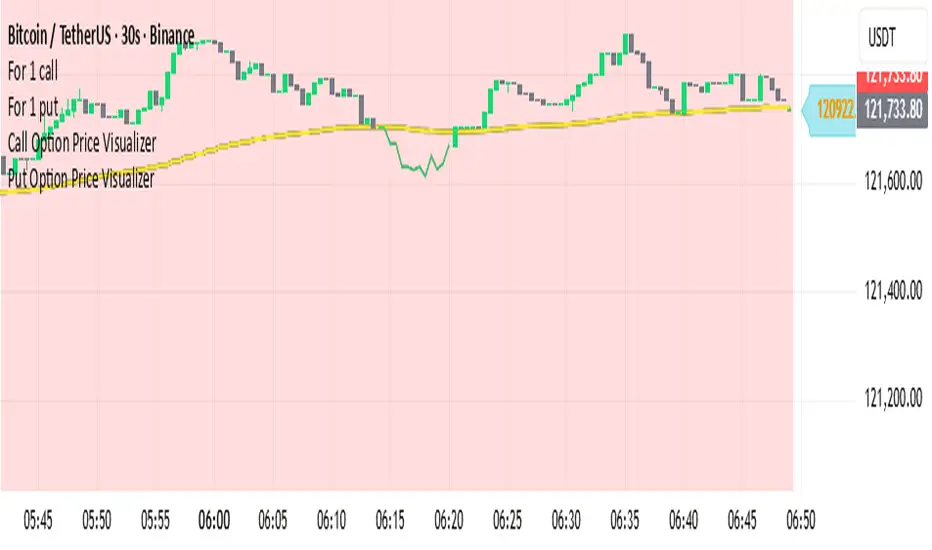 This powerful two-part indicator system provides a streamlined, real-time visualization of both Call and Put option prices for the same strike price, directly on your TradingView chart. It eliminates the need to constantly monitor a separate options chain, allowing traders to see the interplay between call and put premiums and the underlying asset's price action in one integrated view.
