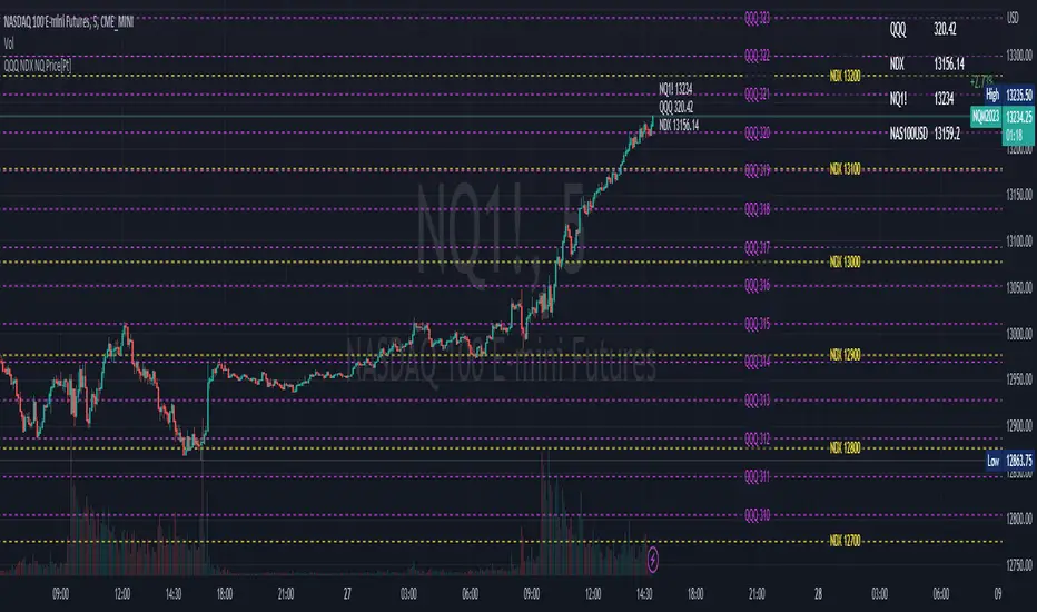 The QQQ NDX NQ Price Converter is a powerful and easy-to-use tool that allows traders to view corresponding price levels for linked instruments in real-time. This includes QQQ, NDX, NQ, and NAS100USD. Although these instruments often move in sync, differences in price movements, volume, and trading hours can create unique key levels and support/resistance areas for each. By mapping these levels on the same chart, traders can more easily spot trading opportunities and improve their chances of success.