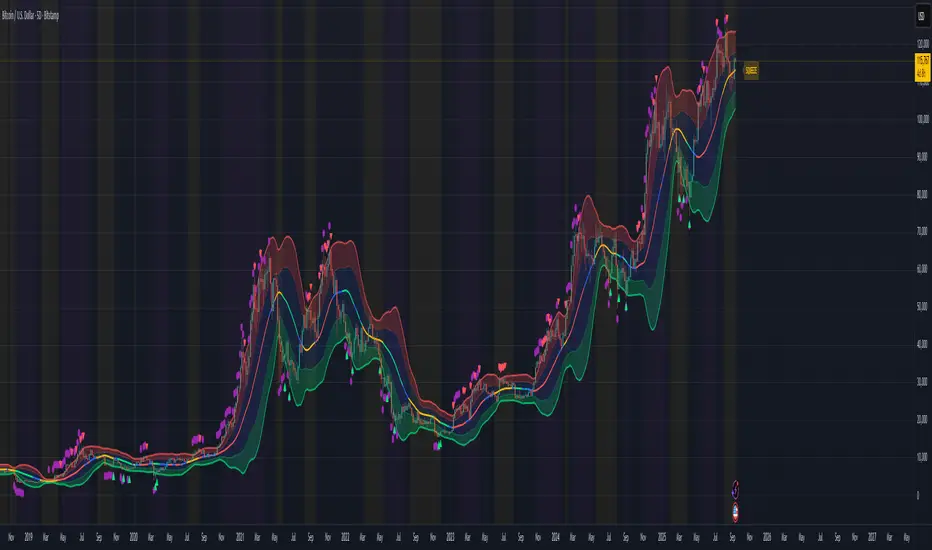 Creates dynamic volatility-based zones that expand and contract with market conditions, showing you exactly where price is likely to react. The multi-layer gradient system instantly reveals whether price is in a high-pressure zone (likely reversal) or neutral zone (likely continuation).