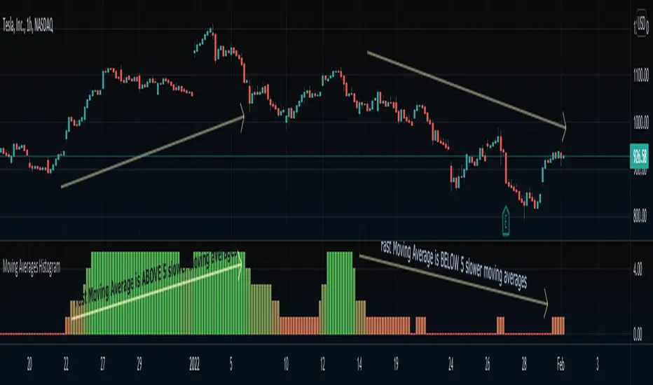 An interesting idea is to simplify the display of whether ONE fast-moving average crosses FIVE other slower-moving averages using just a histogram.