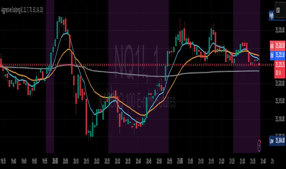 A high-precision intraday indicator designed for Nasdaq futures scalpers who need fast, reliable, and clean signals. This tool blends trend structure (Fast/Slow EMAs), volatility compression (ADX), momentum (RSI), and VWAP positioning to identify high-quality entries during the most active parts of the trading day.