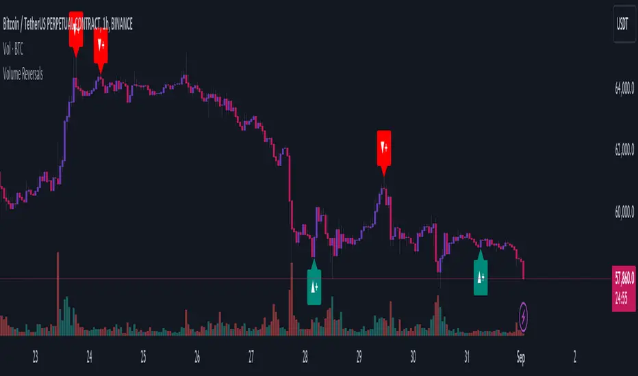 The "Volume Reversals" indicator is a trading tool designed to identify potential buy and sell signals based on volume patterns.