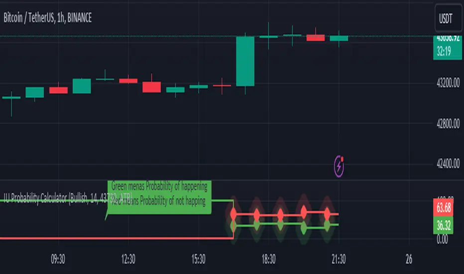 How This Script Works:1. This script calculate the probability of price reaching a user-defined price level within one candle with the help Normal Distribution Probability Table.