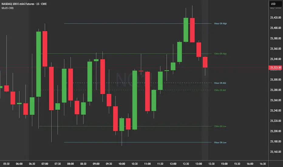 A comprehensive Opening Range (OR) tool for traders who want to track multiple timeframe ORs simultaneously with complete visual customization.