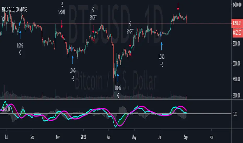 Uses Hull moving average for the signal line instead of your typical EMA.