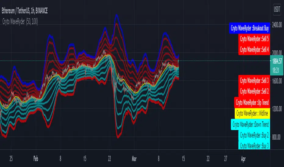 Cryto WaveRyder are envelopes plotted at a standard deviation level above and below a simple moving average of the price. ... Cryto WaveRyder helps determine whether prices are high or low on a relative basis. They are used in pairs, both upper and lower bands and in conjunction with a moving averange.