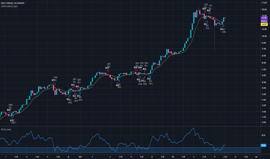 This strategy is called Galileo Galilei, it's free for you all to use and it was developed to be as simple as it can be and to work in bullish or bearish scenarios, but not in flat movements.