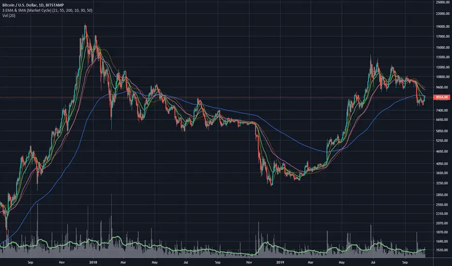 Simple Indicator based on 3 Simple and 3 Exponential Moving Averages. Used to indicate Market Cycles.