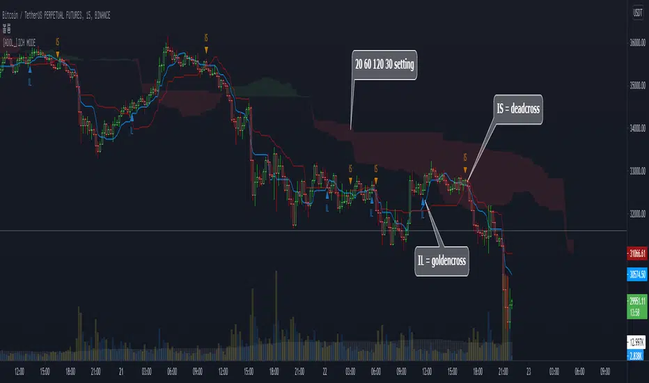 IS stands for Ichimoku short, which means the dead cross between the baseline and the transition line.