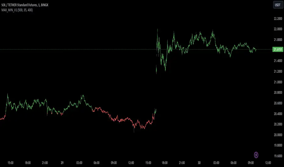 Another simple indicator, maximum, minimum and average values. The point of imbalance in the price of an asset is sought.