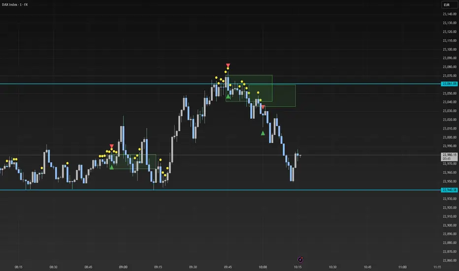 Apply the indicator to a 1-minute chart (optimized for DAX or similar volatile indices).