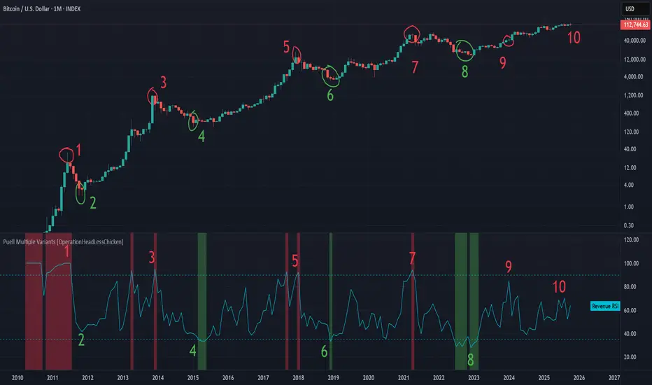Classic Puell Multiple – the original indicator showing how current miner revenue compares to its long-term average.