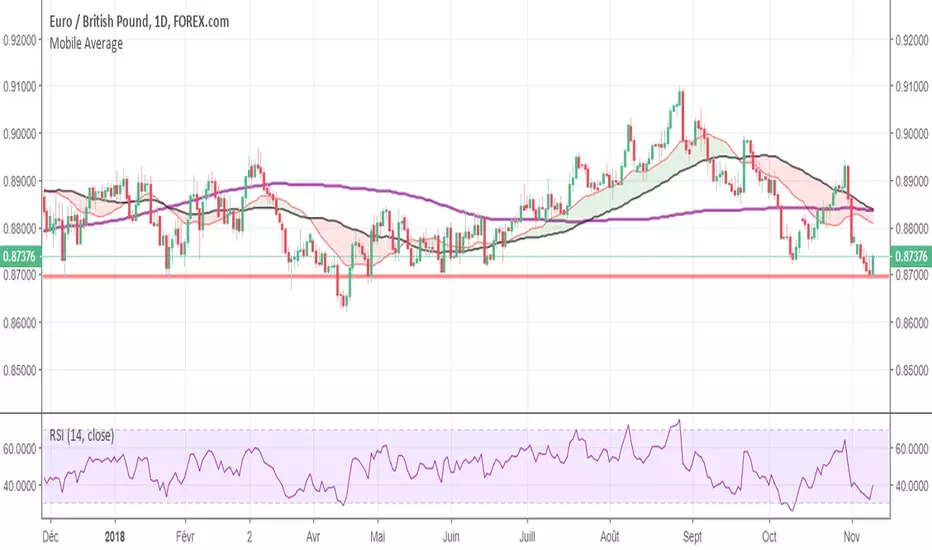 Display of simple moving average and exponential mobile average depending on period.