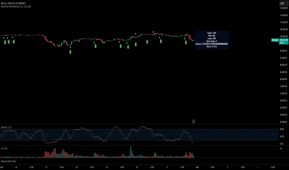 This indicator implements a unique trading strategy known as the "Daily COC (Candle Over Candle) Strategy" enhanced with "SHERLOCK WAVES" for pattern recognition. It's designed for traders looking to capitalize on specific candlestick formations with a negative risk-reward ratio, with the aim of achieving a high win rate (over 70%) through numerous trading opportunities, despite each trade having a higher risk relative to the reward.