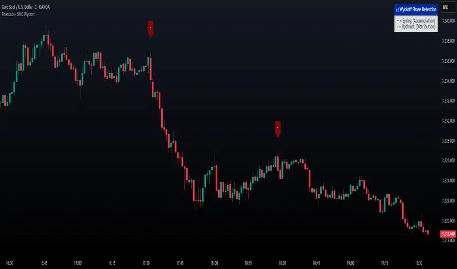 - Support/Resistance Calculator: Scans a user-defined lookback period to establish dynamic levels for Spring and Upthrust detection