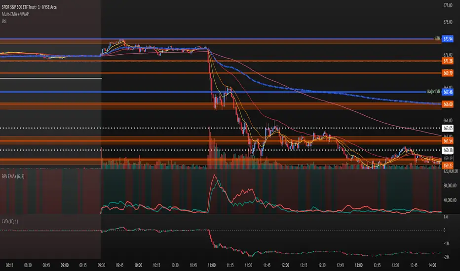 Because volume changes constantly, this indicator is best to identify short term changes in volume that could impact price movements. It is not guaranteed to continue just because buyers or sellers have had a change in pace. Therefore it is advised to use this indicator in combination with significant price levels such as pivot points, or price levels from volume profile tools to identify the price zones where significant volume changes are likely to impact price movements. It is also advised to continue to monitor the changes in pace in buyers and sellers using this volume EMA indicator to determine if a change in pace is short lived or if it will continue for a longer duration.