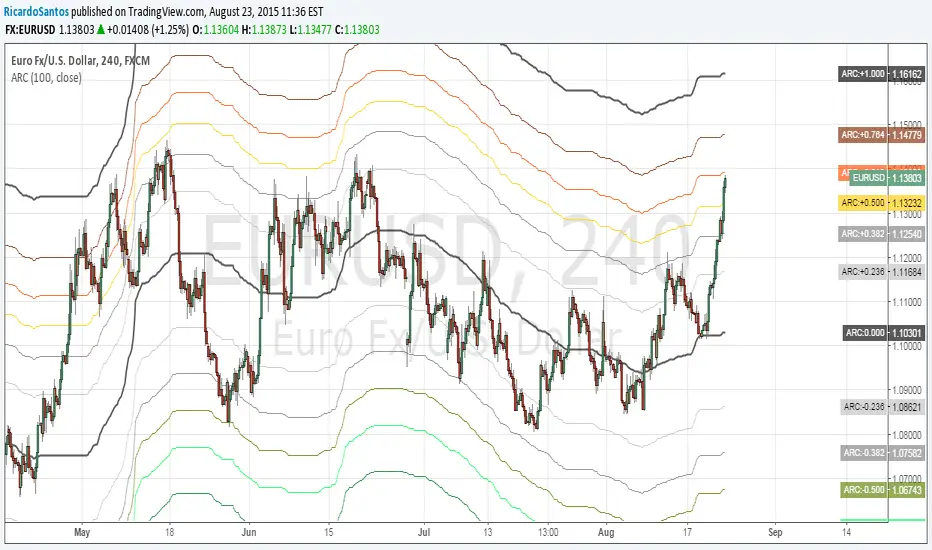 center is based on the mean of price on X bars lookback window, channel width is determined buy maximum volatility from the mean outwards(to the extremes).