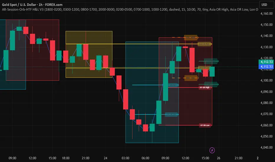 This indicator is built for intraday model execution around liquidity grabs, session timing, and higher-timeframe draw-on-liquidity. It maps out sessions, killzones, opening ranges, and key highs/lows from higher timeframes directly onto any lower timeframe chart (down to 1 minute).