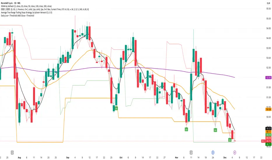 indicator("Daily Low < Threshold AND Close > Threshold", overlay=true)