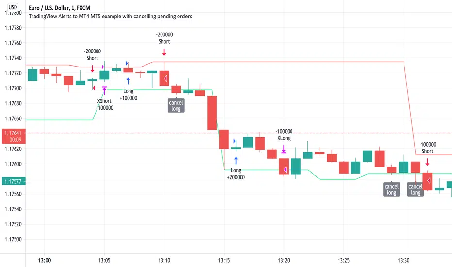 Below is an example strategy, showing syntax to manage placing the orders and cancelling them. Yes, this is another spin-off from my TradingView Alerts to MT4 MT5 . As usual, please don't pay attention to backtest results, as this is educational script only.