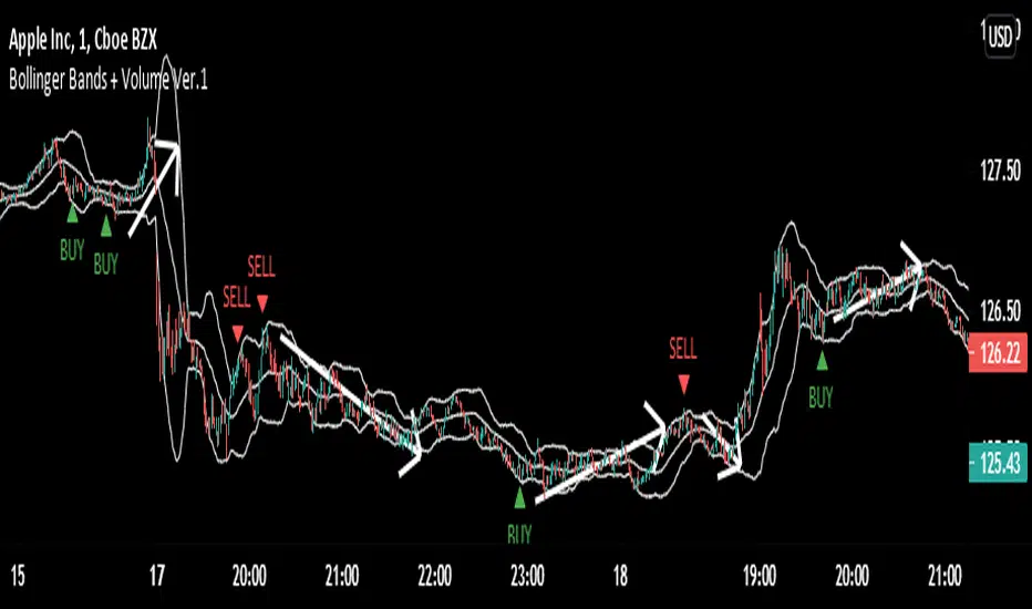 -Whenever price will touch the upper band and if the buying volume is low and the selling volume is high Then it will give SELL signal.