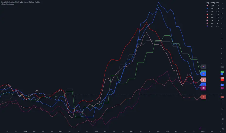 - Inflation data for the USA, European Union, Australia, Canada, Switzerland, Japan, United Kingdom, and New Zealand (Inflation Symbols editable in the settings)
