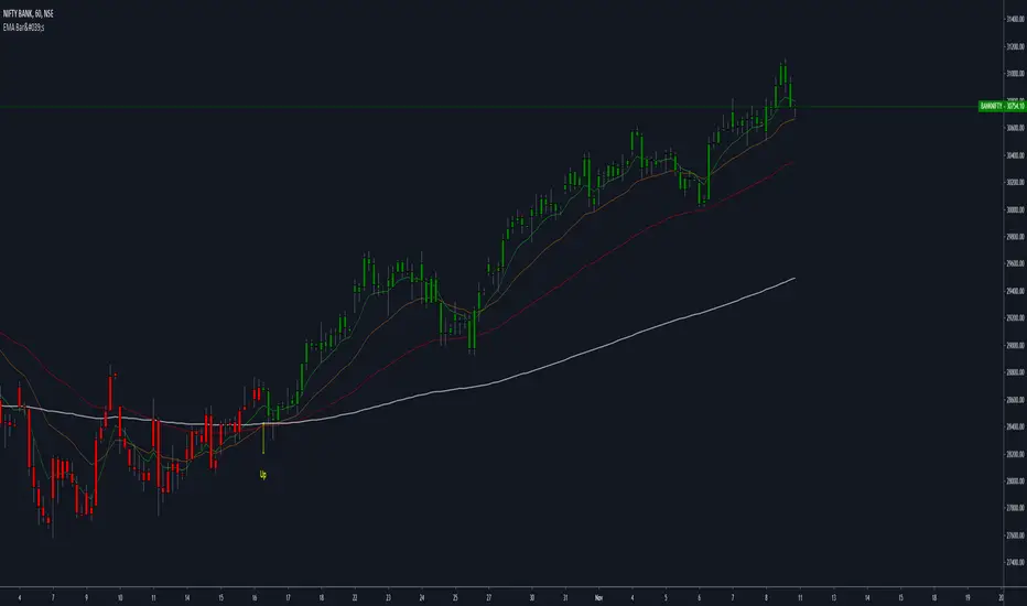 when 21 EMA crosses down 55 EMA : Bar's Turn Red