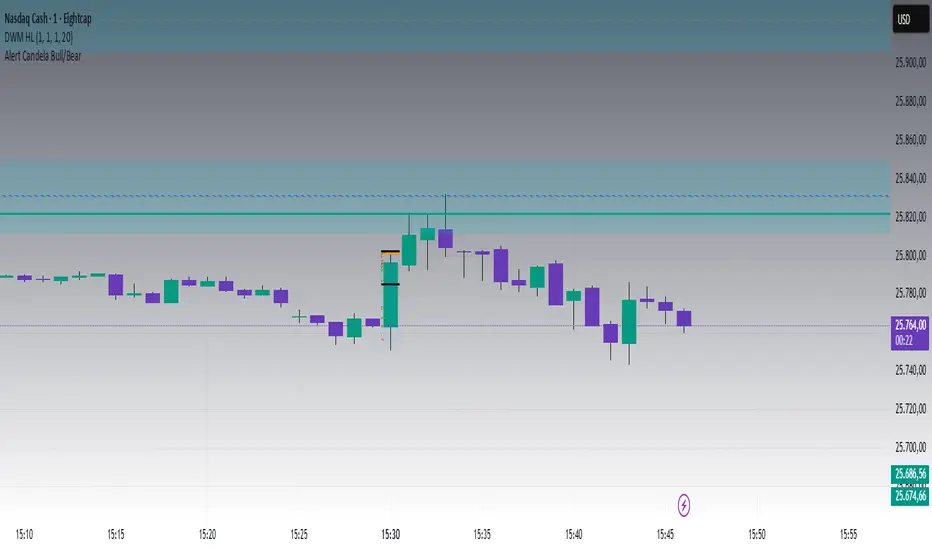 This simple indicator allows you to be notified if the candle closes long or short, according to your timeframe.