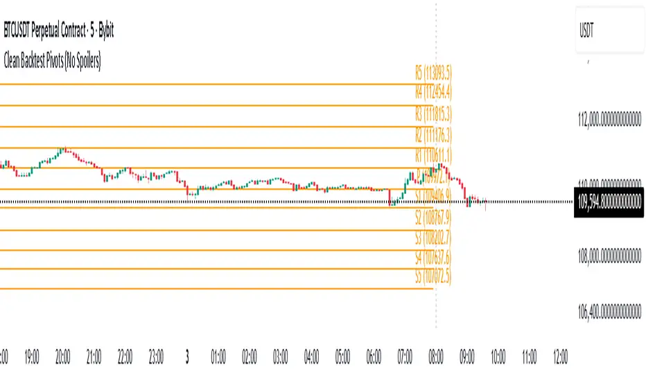 When replaying or backtesting September 8 at 08:00 (Asian session), the indicator already shows the final R1, R2, S1, S2 for the entire September 8 daily candle, even though in real trading at that moment you would have no idea where the day will close or what the final daily range will be. This creates massive look-ahead bias and makes any strategy that uses daily pivots impossible to test realistically.