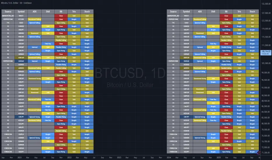 ## 🧭 Release Notes — Screener v6- Updated to **Pine Script v6** with a cleaner and more efficient codebase.