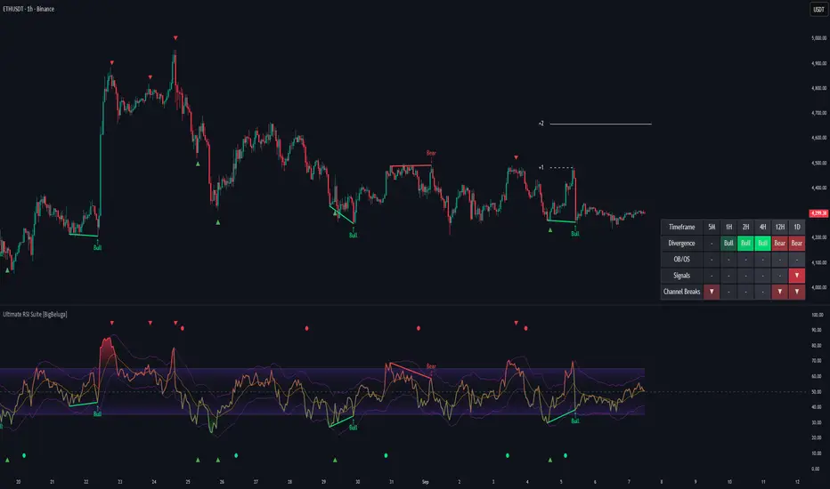 The Ultimate RSI Suite [BigBeluga] transforms RSI into a smart momentum-analysis system.