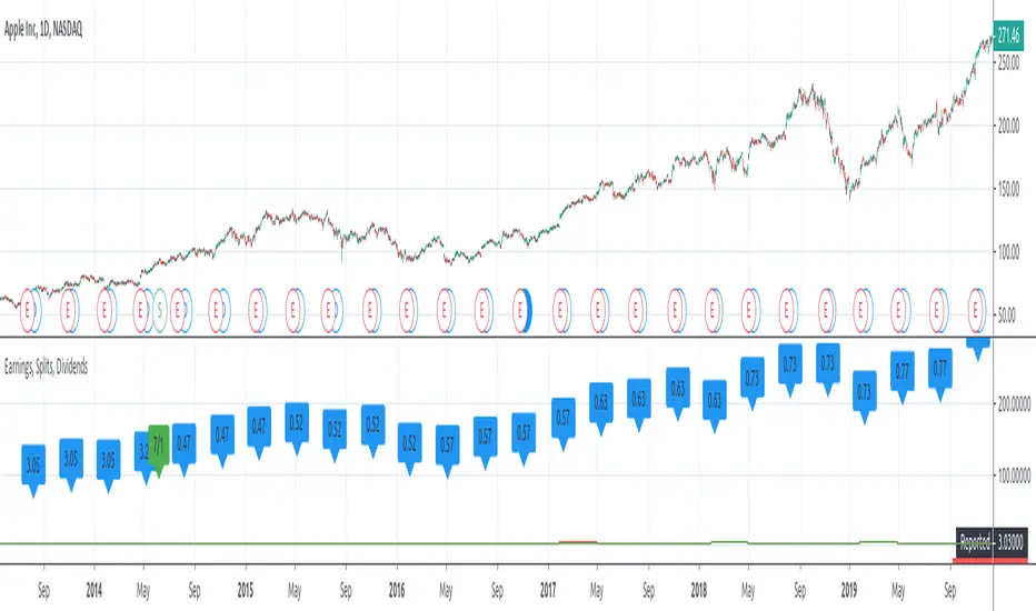 Example of requesting Earnings, Splits, Dividends using pine-script.