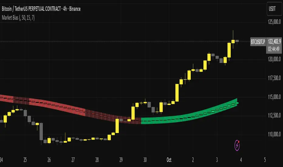 Smoothed HA candles (optional): green = bullish bias, red = bearish bias.