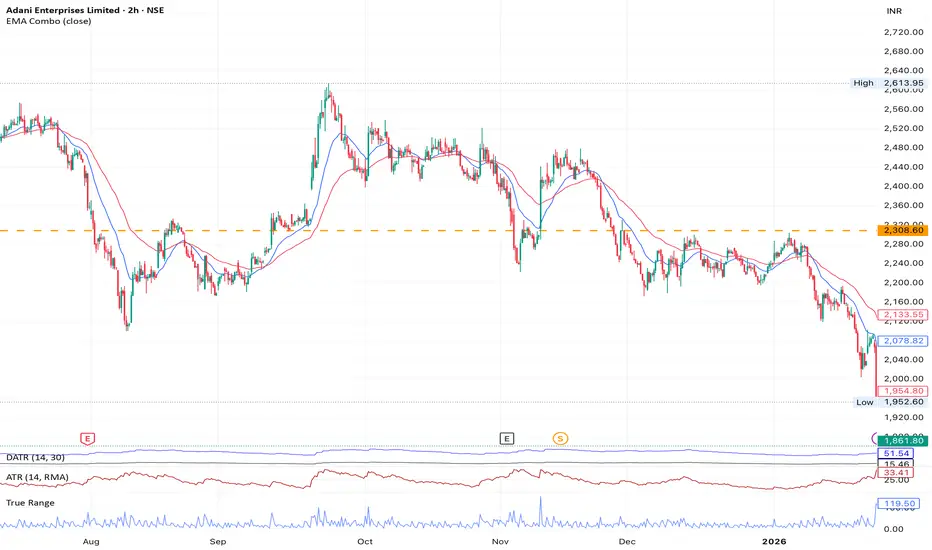 • Price below EMA 50 & EMA 200 → Bearish market structure