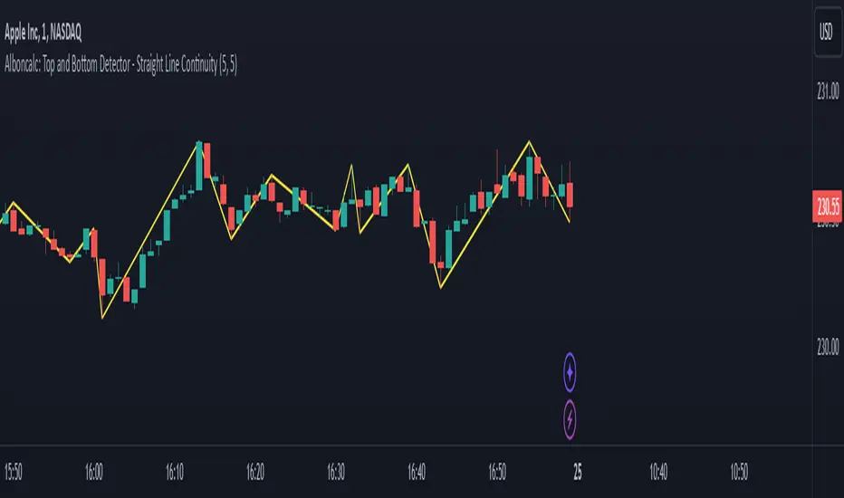 1. Load the Indicator: Add the "Alboncalc: Top and Bottom Detector - Straight Line Continuity" to your chart from the TradingView script library.