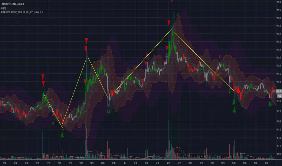 Experiment in finding potential pivots using using multiple period volatility measurements (ATR) and ALMA.