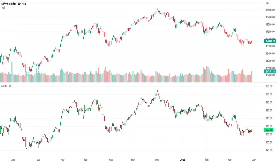 Nifty 50 index of Indian Stock Market, in terms of US Dollar terms at that specific time.