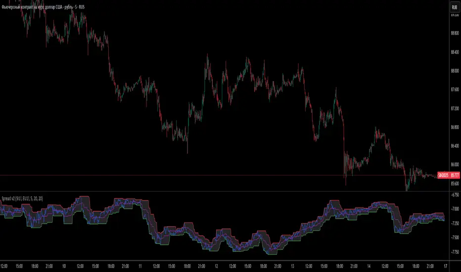 Powerful tool for analyzing market divergences and identifying arbitrage opportunities! It creates a synthetic spread chart between two assets, displaying it in a clear format and helping traders spot moments of maximum decorrelation.