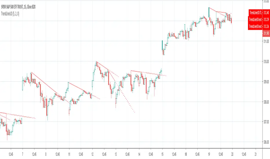 By deploying this indicator, should the condition meet, you don't need to draw the trend lines by hand anymore. You can also consider it as a trend line reminder.