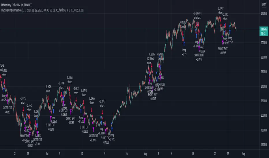 This is a crypto swing strategy, designed for long term periods and correlated pairs with crypto market total(or other coins used as correlation, however I recommend total of crypto or btc)