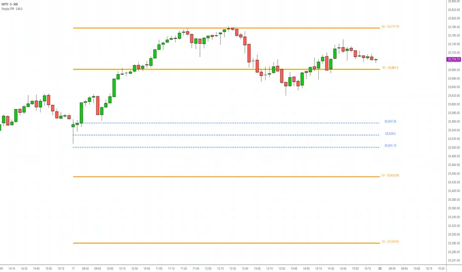 ⦿ Optional Fills: Visualize the CPR zone or CPR–R1/S1 bands with semi-transparent shading.