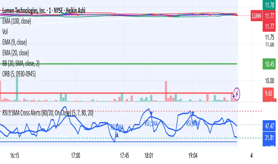 RSI ⇄ SMA Cross Alerts (80/20, On Close)