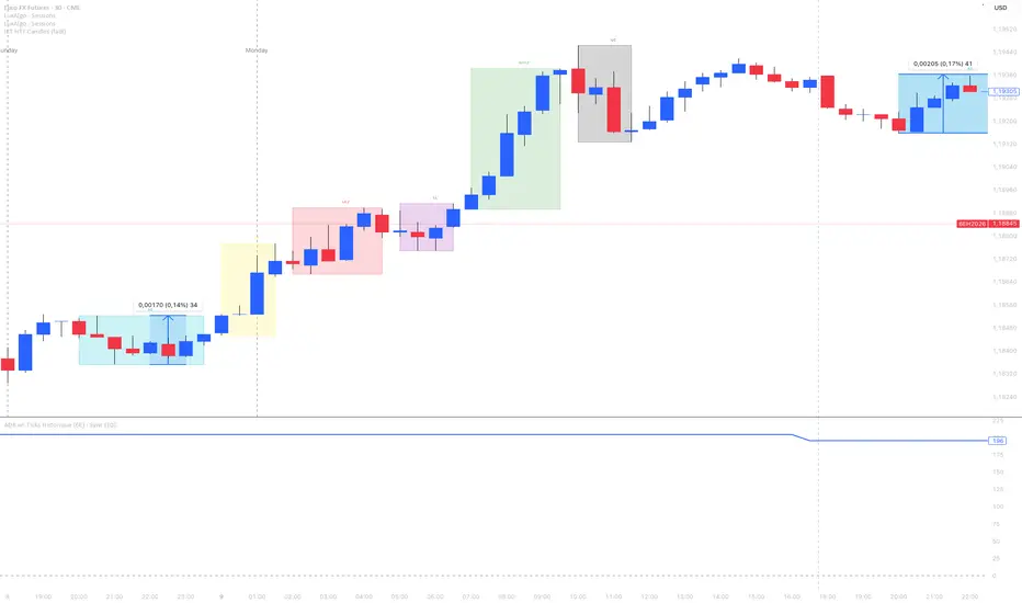 This indicator calculates the Average Daily Range (ADR) in ticks for the Euro FX Futures contract (6E) with consistent historical display across all timeframes.