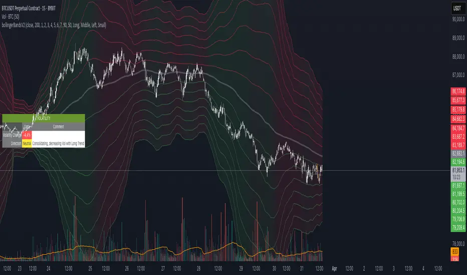 : Provides a volatility indicator based on Bollinger Bands, and indicates wheather the volatility is increasing or decreasing.