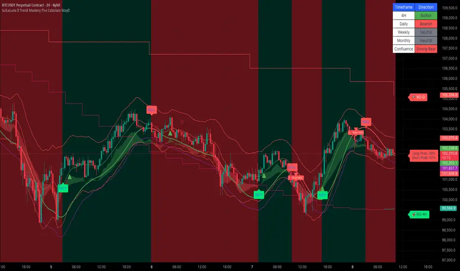 Fellow F.I.R.E. Decibels, disciples of the Calzolaio Way—welcome to the sacred toolkit. This indicator, "SulLaLuna 💵 Trend Mastery:The Calzolaio Way🚀," is forged from the elite SulLaLuna stack, drawing wisdom from Market Wizards like Michael Marcus (who turned $30k into $80M through disciplined trend riding) and Oliver Velez's pristine strategies for profiting on every trade. It's not just lines on a chart—it's your architectural blueprint for financial sovereignty, where data meets divine timing to build the cathedral of Project Calzolaio.